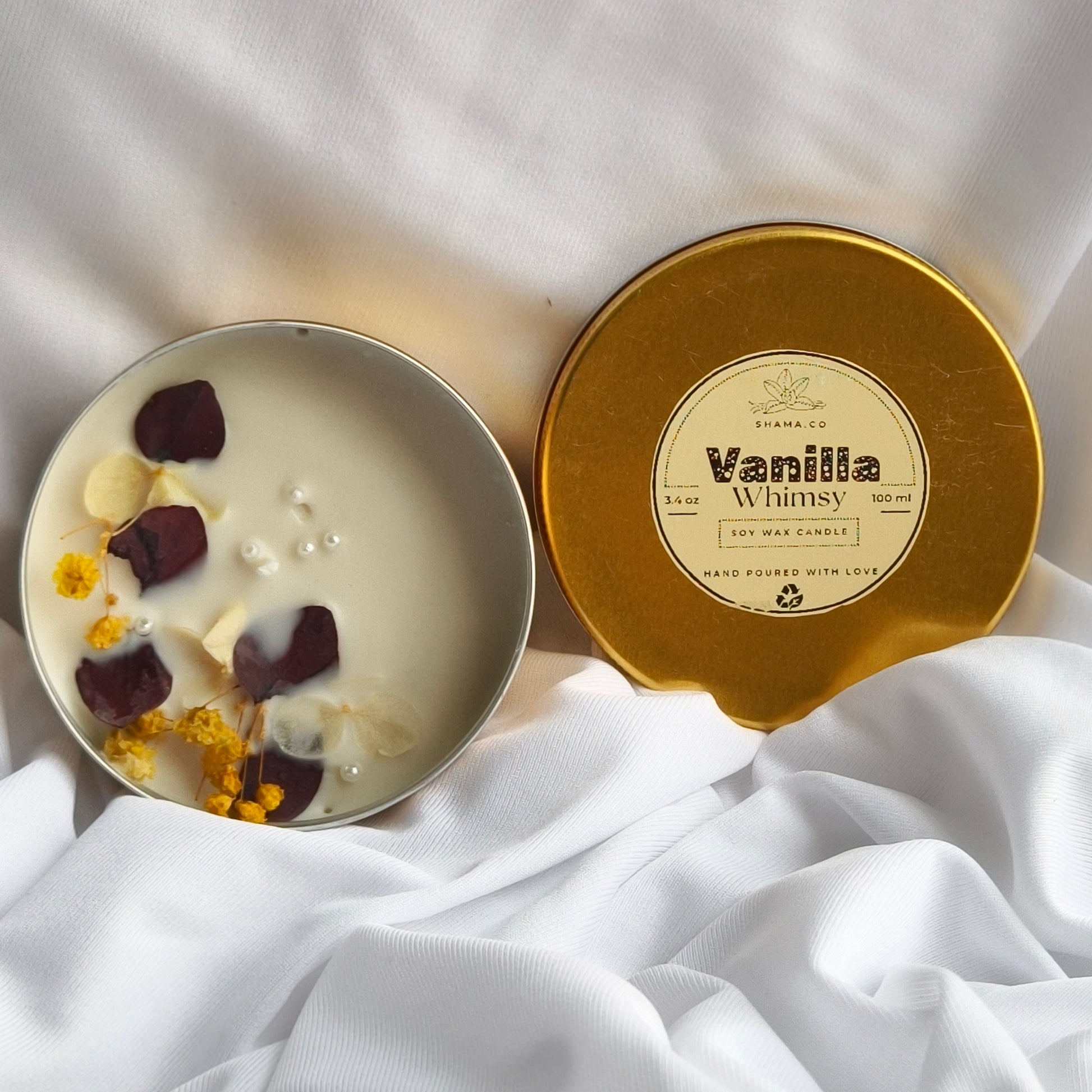 Hand poured soy candles with dried flowers and a soft floral scent. Perfect for gifting and home decor.