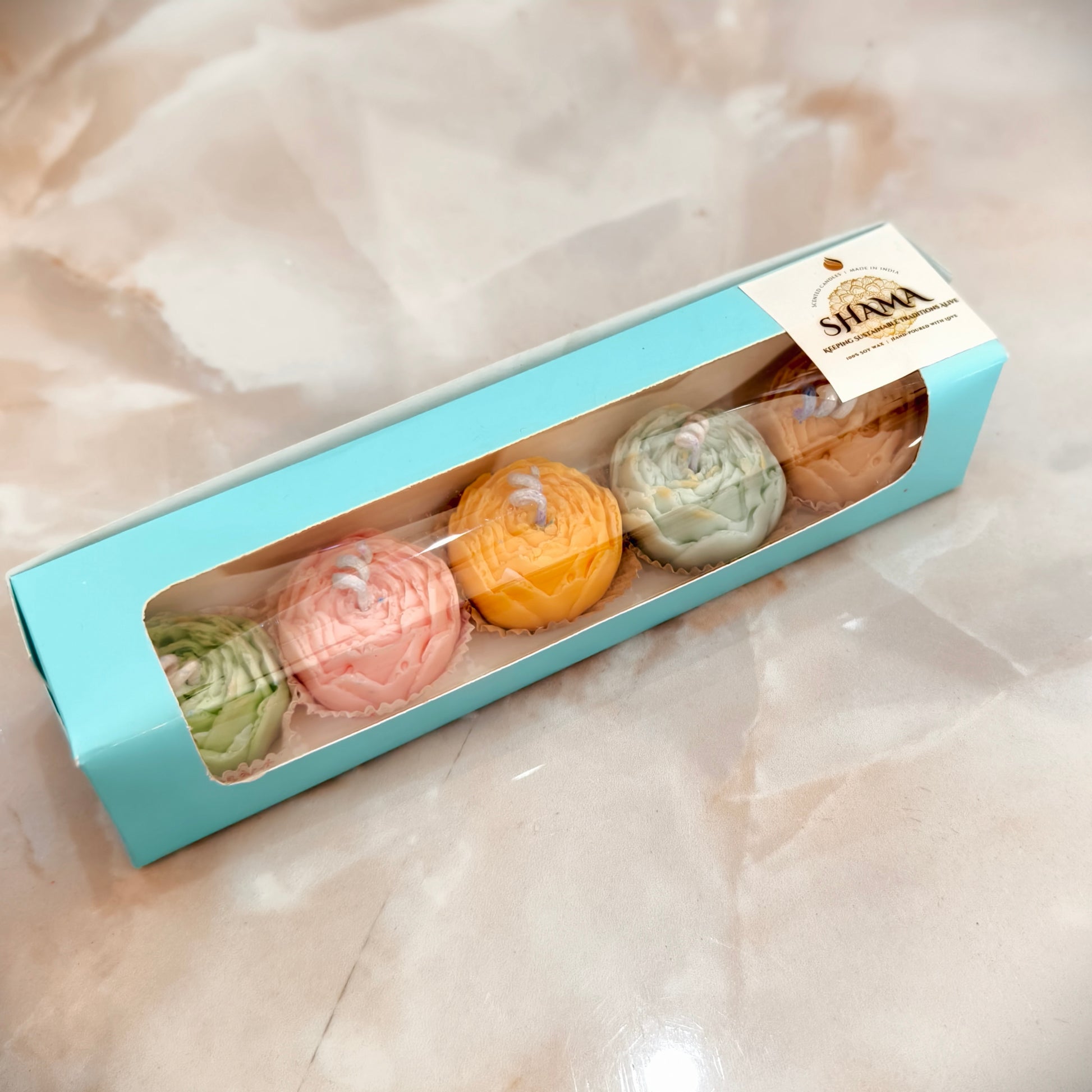 Delight in the beauty and elegance of the Floral Harmony Candle Gift Set, a collection of intricately carved flower-shaped candles presented in a stunning pastel palette. Each candle is carefully crafted to resemble a blooming flower, making this set a perfect gift for loved ones or a charming addition to your home decor. Housed in a chic and transparent box, these candles add a touch of nature-inspired elegance to any space. Perfect for gifting at weddings, birthdays, or special occasions, this set brings warmth, beauty, and a soothing ambiance to any environment. The soft hues and detailed craftsmanship ensure these candles are as much a visual delight as they are a functional source of light.