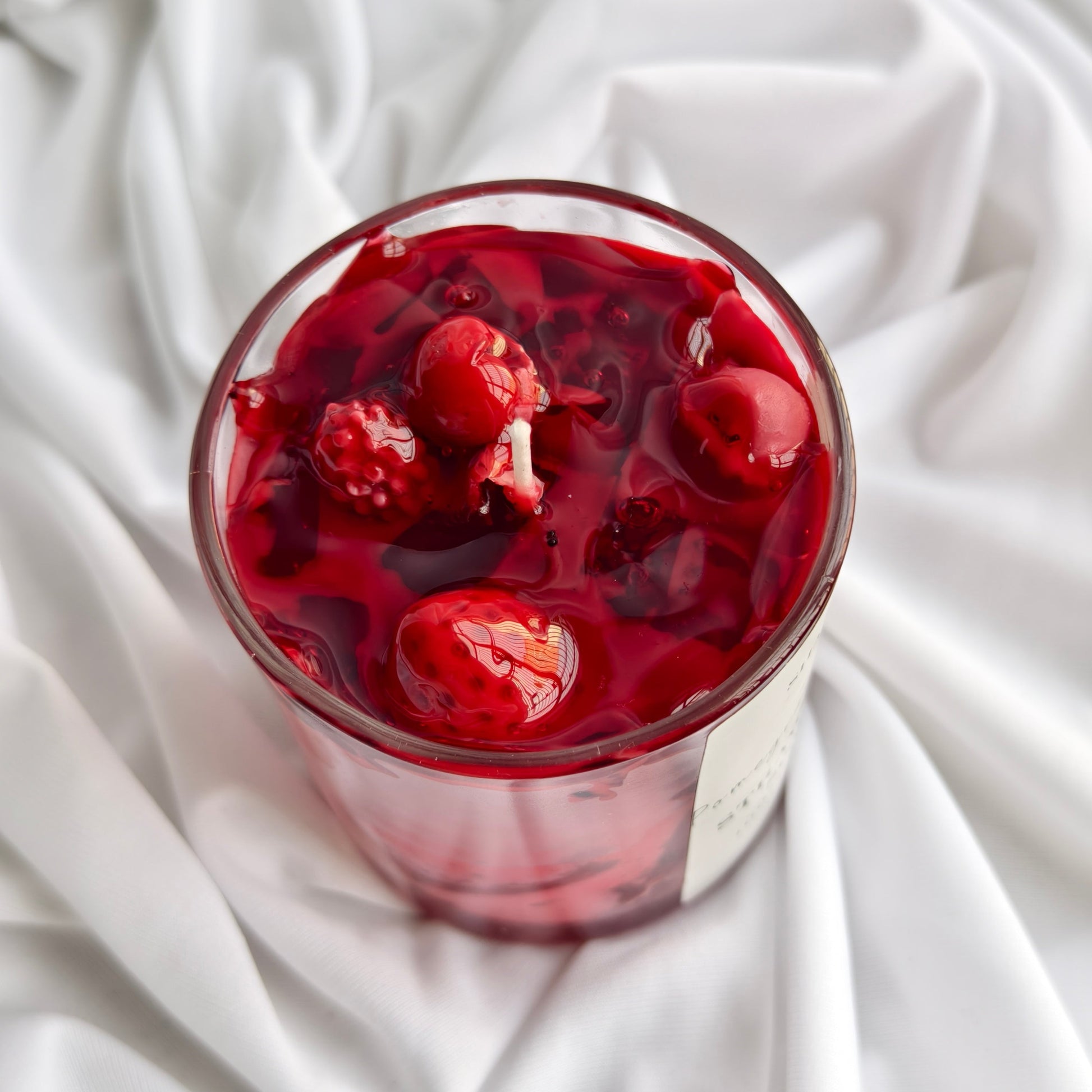 Candle . Infused with natural fruit chunks and crafted from 100% soy wax, this candle delivers a rich, juicy scent that lingers. Hand-poured in small batches for quality and charm.
